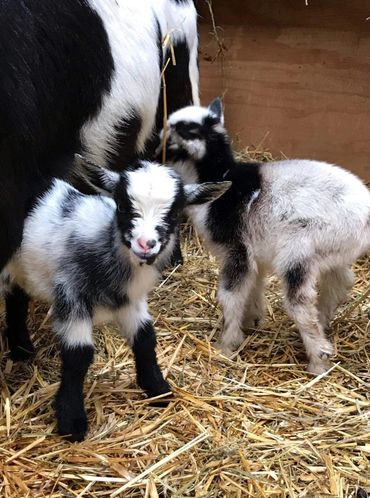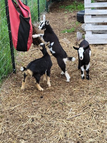Unfortunately, we don't have any babies for sale at this time. You can click the link below to see our current breeding schedule and get information on when we'll be expecting our next babies to arrive. We did promise you cute goat pictures though, so below you can find pictures of some of the babies we've had on the farm in the past. All of the goats pictured below are still here and you can see what they look like all grown up in the other pages, Enjoy!